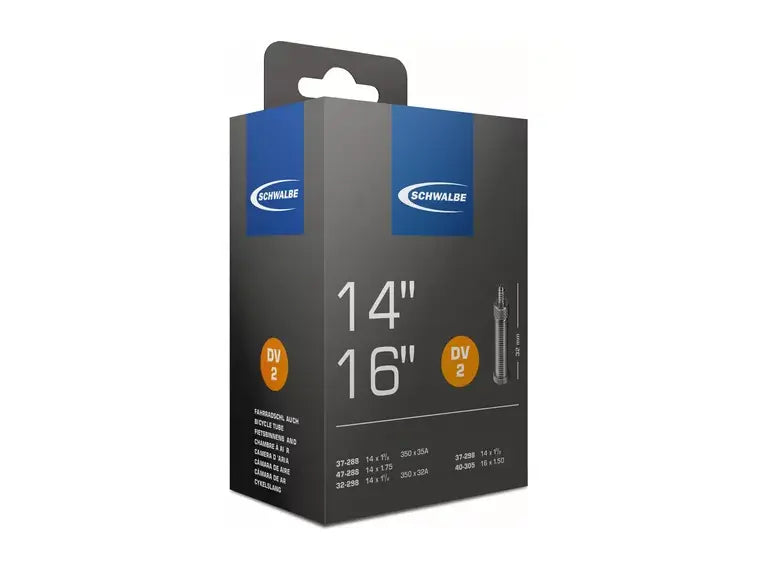De Schwalbe DV2 Binnenband is een binnenband voor 14 inch en 16 inch kinderfietsen. De Schwalbe DV2 is geschikt voor een breedte van 32-44 mm. De Schwalbe DV2 is een veilige binnenband gemaakt van het duurzame rubber genaamd butyl dat Schwalbe in nagenoeg al zijn binnenbanden gebruikt. Deze Schwalbe D2 binnenband komt met een hollands ventiel.